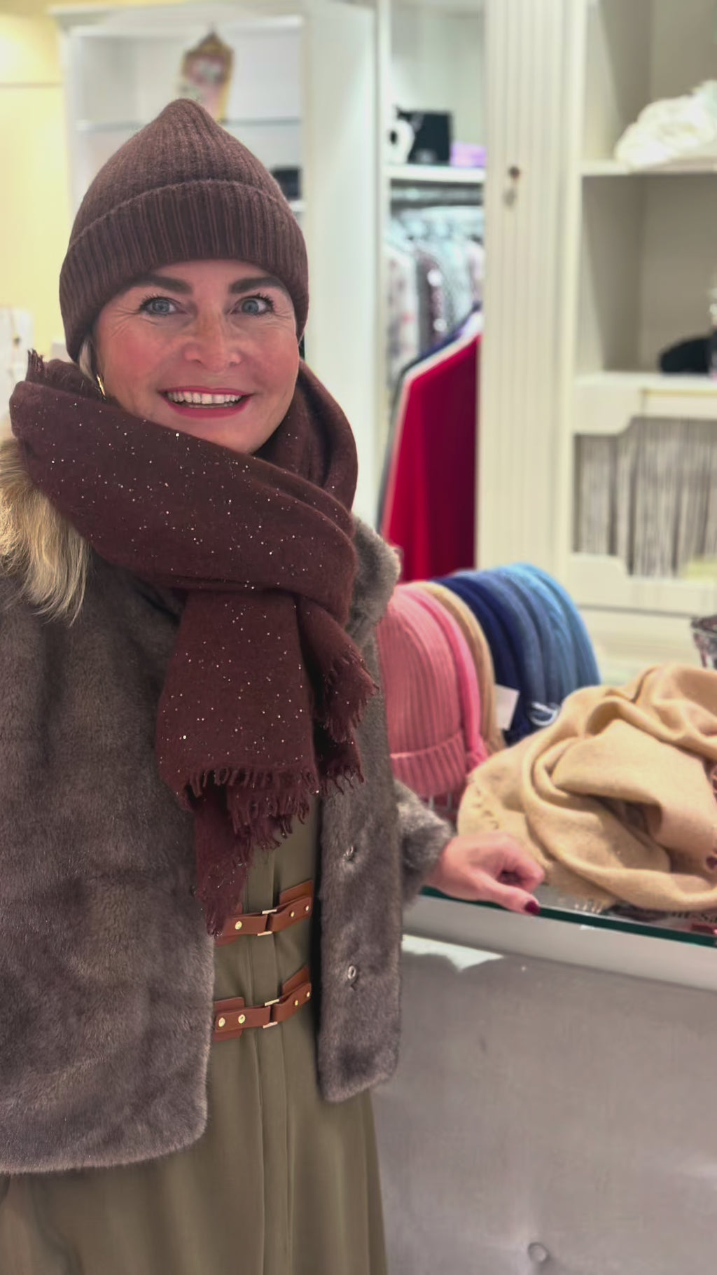 Kuscheliger Luxus für kalte Tage! Die schokobraune Kaschmir-Beanie von Blossom & Co. verwöhnt dich mit weichem Feinstrick, hält warm und sieht dabei stilvoll und modern aus – ein echtes Must-have für die Herbst/Winter-Saison.