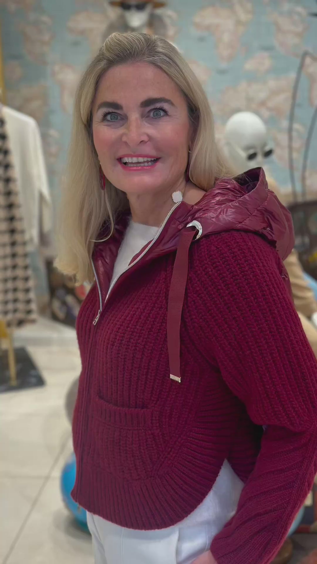 - Das Fotomodel entspricht der Körpergröße 177 cm und trägt Größe 36