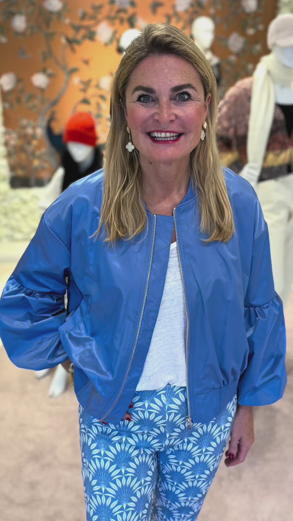 Das absolute Highlight der Jacke sind die voluminösen Ballonärmel, die durch eine geraffte Taillierung am Oberarm eine architektonische Form erhalten. Der klassische gerippte Stehkragen sowie die elastischen Rippbündchen an Saum und Ärmelabschlüssen sorgen für die typische Bomber-Silhouette und eine perfekte Passform. Ein robuster, silberfarbener Front-Reißverschluss und dezent integrierte Seitentaschen vereinen modische Raffinesse mit praktischer Funktionalität.